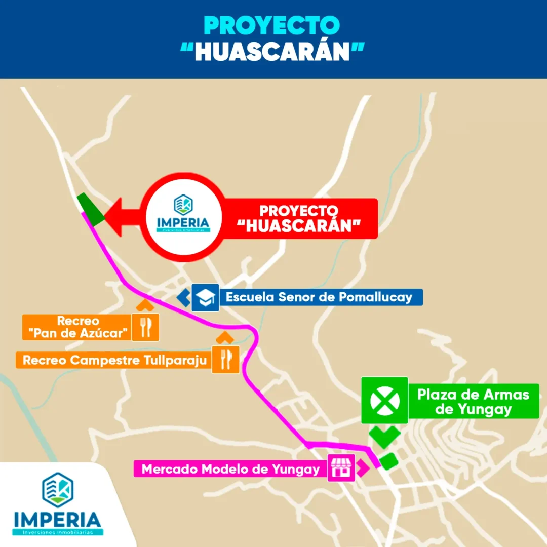 Está en plena carretera Huaraz – Caraz, ubicado a 3 minutos de la ciudad de Yungay, con lotes desde 160m2, rodeado de recreos campestres y a la vez muy cerca de la ciudad, podrás construir una amplia casa junto a los tuyos y muy cerca a todo.